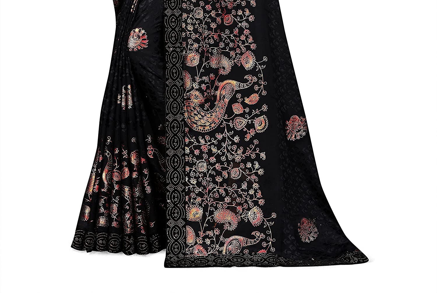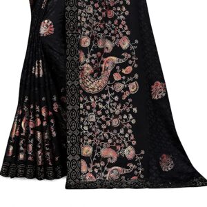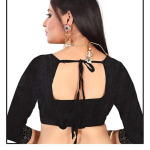 ✔ This Saree is by CHITRAKSHI. ✔ It is made of Barraso Material and Finished in Black & Blue Color. ✔ 1 X Unstitched Saree ✔ Saree perfectly total length of the Saree is 6.3 meters including the Running Blouse piece of 0.80 meters which is attached at one end of the Saree.