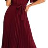 Glow and lightness of this enticing pink fit and flare dress, with pleats below waist, offers a comfy casual look which translates into an excellent two mile wear with bohemian styling. This calf length dress features layered pleats, 3/4 sleeves and round neck.