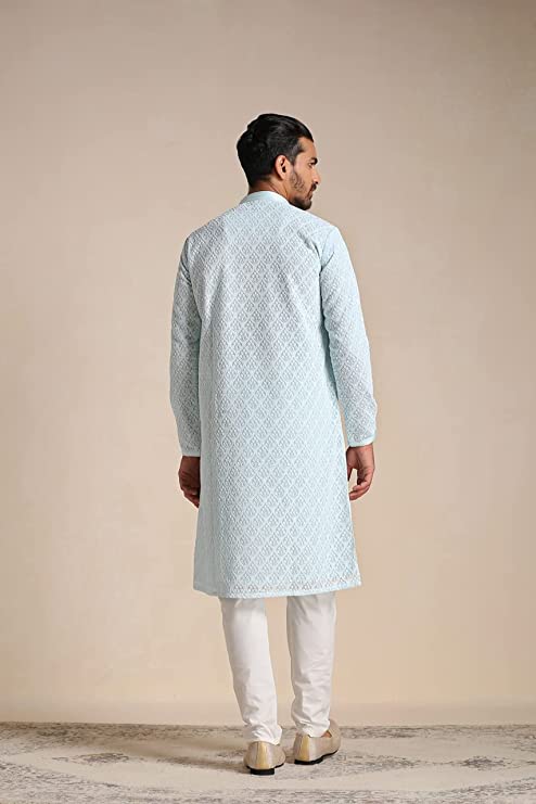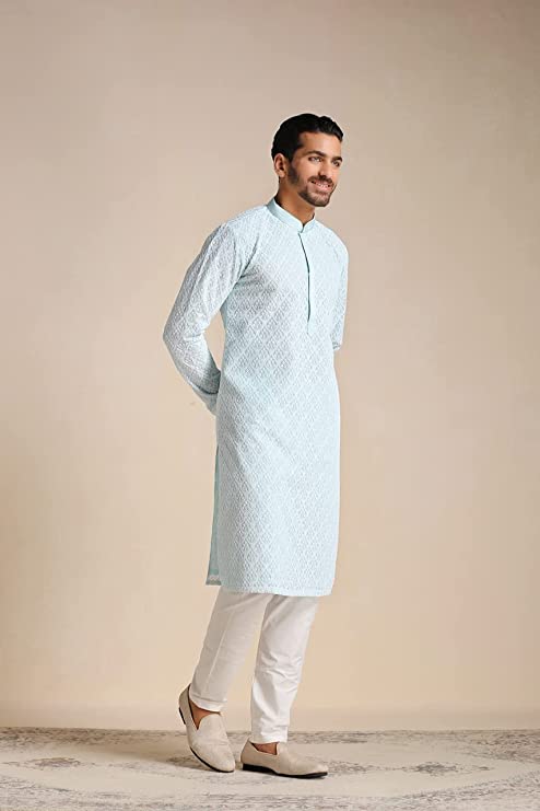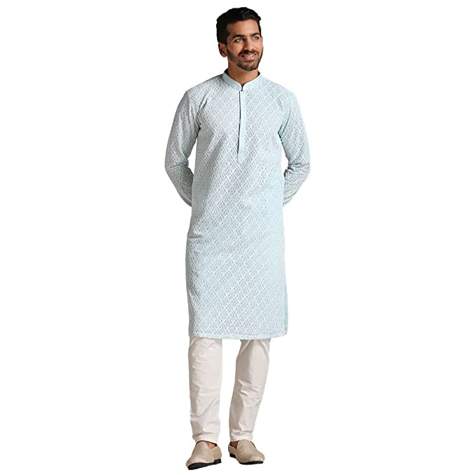 Impress everyone with your amazing fashion sense by donning this Kurta set for men. Tailored from finest fabric and fashioned with a chinese collar for a dash of style. It is a great addition to your wardrobe and will win you compliments from one and all Perfect for Gifting: Show the unmatched joy of your happiness to your loved ones by gifting this royal & elegant Kurta by Manyavar. Give your friend, brother, dad, or husband a charming feel with our imperial collection of readymade kurta set, kurta, and more. With many appealing colors and fabrics to choose from, your special one will surely outshine everyone else. In the fast-paced world, traditional Indian styles need to be flaunted with a twist. Manyavar brings to you its range of traditional and Indo-Western outfits, a perfect blend of royal and festive designs emulated into trendy traditional wear for you.