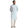 Manyavar Kurta Set for Men, Full Sleeves Mandarin Collar Ethnic Men’s Kurta Set for Engagement, Wedding, Party Blended Cotton All Over Self Design (Blue)
