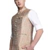 MANQ Men Fawn Woven Jaquard Silk Nehru Jacket