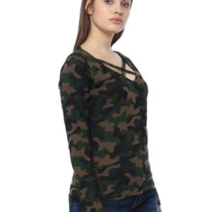 Veirdo Pure Cotton Regular Fit V Neck Full Sleeves Camoflauge T-Shirt for Women & Girls (GL_02_CAMO)